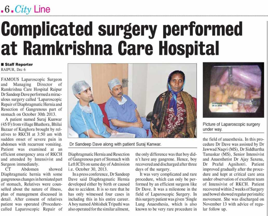 Complicated surgery performed at Ramkrishna Care Hospital